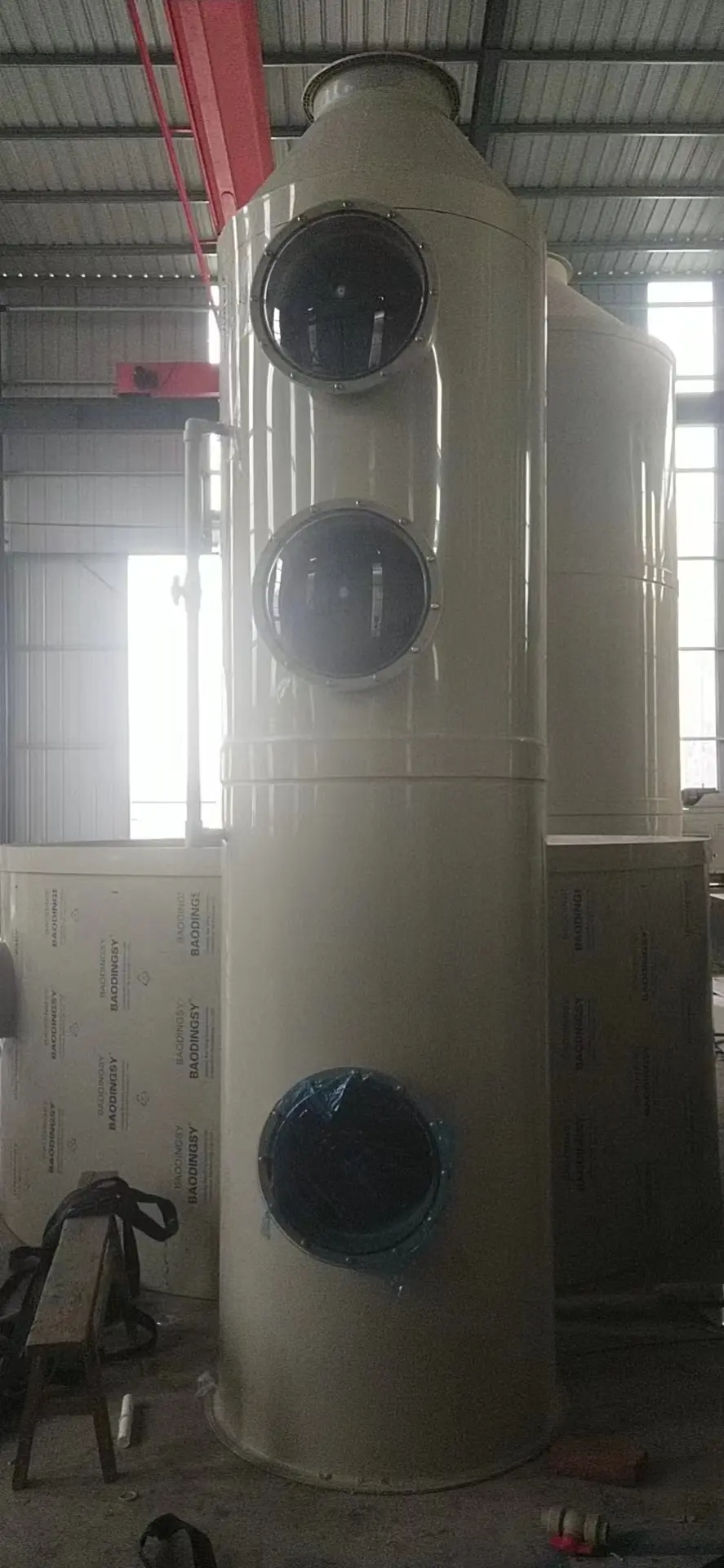 喷淋塔作为环保废气处理的一种处理设备而存在,根据工作原理分为循环水喷淋塔,碱液喷淋塔,酸液喷淋塔(别名:酸洗塔)。根据塔体材质分为玻璃钢喷淋塔、pp喷淋塔、不锈钢喷淋塔。根据废气性质不一样选择合理的喷淋材质和喷淋工艺。
